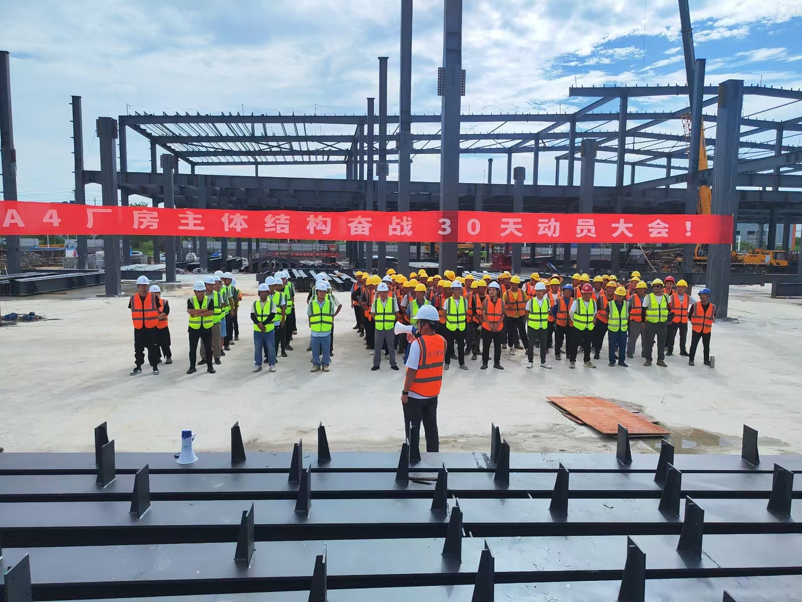 8月2日,武漢奇鋐A4廠房主體結(jié)構(gòu)工程進(jìn)入30天倒數(shù)計(jì)時。在武漢奇鋐施工現(xiàn)場,"熱度"和"速度"絲毫不減,他們從開工建設(shè)一直忙碌作業(yè),戰(zhàn)酷暑、戰(zhàn)雨水、抓建設(shè),施工緊張有序推進(jìn),以"滿弓"狀態(tài)全力衝刺最後30天!武漢奇宏工程工期情況特別緊張,在高壓環(huán)境下施工團(tuán)隊(duì)從不言棄,全力以赴搶工期抓進(jìn)度保質(zhì)量,用實(shí)際行動詮釋勞模精神和工匠精神。希望創(chuàng)興的各專案團(tuán)隊(duì)向武漢團(tuán)隊(duì)學(xué)習(xí),展現(xiàn)出充滿幹勁的精神面貌和敢於超越自己、挑戰(zhàn)極限的奮鬥精神,努力壓迫自己,讓自己蛻變!